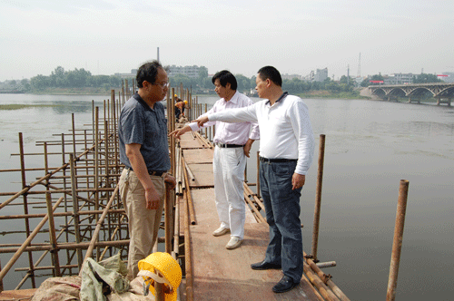 2009年5月31日,公司李世龍總經(jīng)理、劉朝發(fā)副總經(jīng)理、工程部李立柱經(jīng)理、辦公室紀愛國主任等到公司承建的泉河大橋檢查工作。