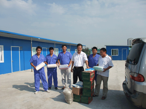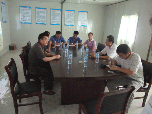 項(xiàng)目部經(jīng)理黃建海向李主席一行表示熱烈歡迎,就項(xiàng)目工程進(jìn)度、質(zhì)量、安全生產(chǎn)及職工的生活情況進(jìn)行了匯報(bào),李主席對(duì)項(xiàng)目部工作給予了肯定,并對(duì)項(xiàng)目部開展“雙爭(zhēng)”競(jìng)賽活動(dòng)作了指導(dǎo)。李主席一行深入施工現(xiàn)場(chǎng),向堅(jiān)守在一線的員工表示了慰問,他指出要做好一線職工防暑降溫工作,確保項(xiàng)目工程無一例安全事故,勉勵(lì)大家要抓住當(dāng)前有利的施工條件,進(jìn)一步加快施工進(jìn)度,抓好工程質(zhì)量,為公司項(xiàng)目創(chuàng)建品牌工程,并親手送上了防暑降溫物品。