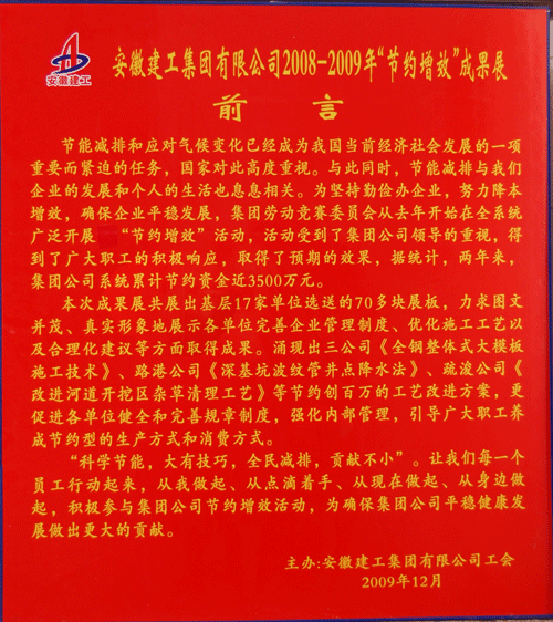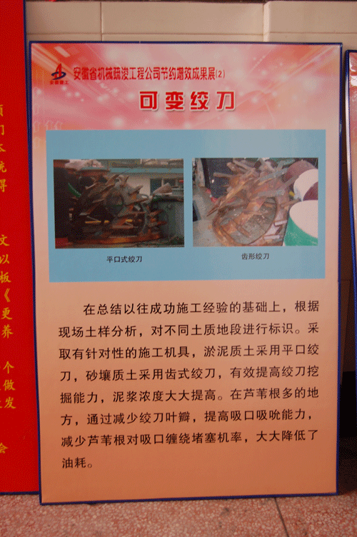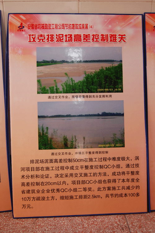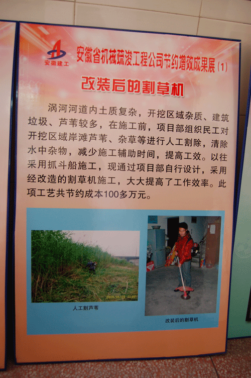 1月11日上午,集團(tuán)公司“節(jié)約增效”活動成果巡回展到我公司展出,本次成果展共展出選送的70多塊展板,展出作品圖文并茂、真實形象地展示各單位完善企業(yè)管理制度,優(yōu)化施工工藝以及合理化建議等方面取得的成果。其中我公司“改進(jìn)河道開挖區(qū)雜草清理工藝”為公司節(jié)約創(chuàng)百萬的工藝改進(jìn)方案,受到了集團(tuán)領(lǐng)導(dǎo)的高度贊揚。此舉,不僅健全和完善了規(guī)章制度,強化內(nèi)部管理,而且還引導(dǎo)廣大職工養(yǎng)成節(jié)約型的生產(chǎn)方式和消費方式。