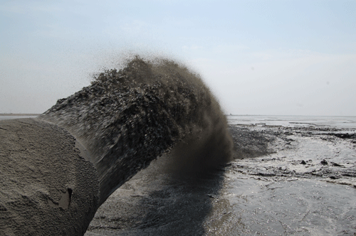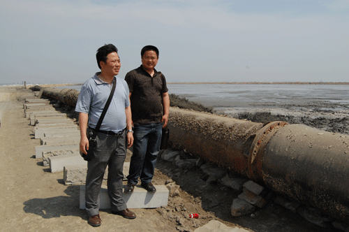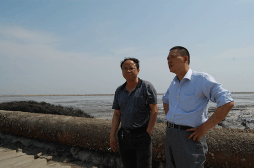 黃渤海分公司董雙武經(jīng)理(左)和工程處主任高兵建