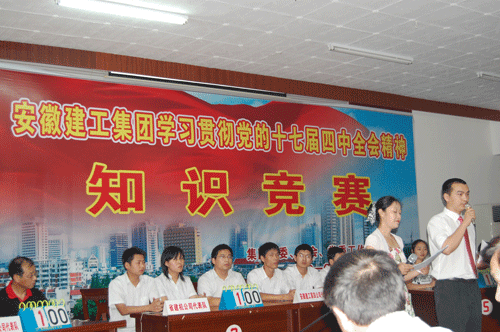 6月24日,公司經(jīng)過認(rèn)真組織、積極備戰(zhàn),選派隊(duì)員參加了安徽建工集團(tuán)“學(xué)習(xí)貫徹黨的十七屆四中全會(huì)精神知識(shí)競賽”活動(dòng)。此次活動(dòng)由集團(tuán)紀(jì)委、工會(huì)、黨委工作部、團(tuán)委聯(lián)合舉辦。