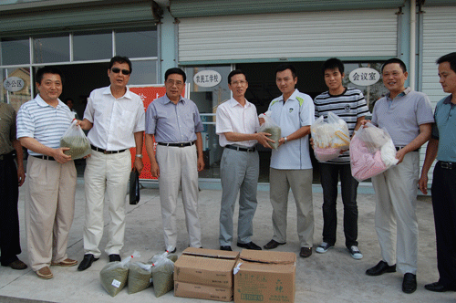 2010年8月3日,集團公司黨委書記張海平,紀委書記、工會主席劉振武,工會副主席李鵬飛等一行冒著高溫酷暑來到交航公司蕪申運河02標項目部送“清涼”。在炙熱的工地上,領(lǐng)導(dǎo)們將帶來的一袋袋清涼解暑的物品遞交到在高溫中奮戰(zhàn)的一線施工人員手中,給他們送去一份清涼,讓一份份沁人心田的關(guān)愛在親切的問候中悠然傳遞。