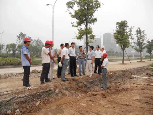 汪建中副市長(zhǎng)一行查看我工地現(xiàn)場(chǎng),并與項(xiàng)目經(jīng)理朱文明親切交談,仔細(xì)詢問了工程進(jìn)度情況及現(xiàn)場(chǎng)需解決的問題。汪副市長(zhǎng)指出政務(wù)中心廣場(chǎng)工程是滁州市重點(diǎn)竣工項(xiàng)目之一,為迎接農(nóng)歌會(huì)展滁州新形象,因而工程任務(wù)重、責(zé)任大,各部門人員要高度重視,加快施工進(jìn)度,確保農(nóng)歌會(huì)前順利完工。