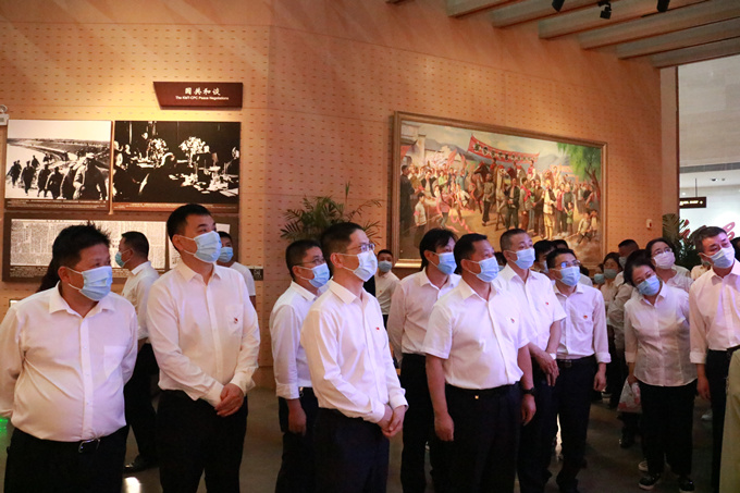 為慶祝中國(guó)共產(chǎn)黨成立100周年,貫徹落實(shí)黨史學(xué)習(xí)教育工作要求,5月11日下午,安徽交航機(jī)關(guān)黨支部、引江濟(jì)淮項(xiàng)目黨支部、聯(lián)合開(kāi)展黨史學(xué)習(xí)教育主題黨日活動(dòng)。公司領(lǐng)導(dǎo)班子成員,機(jī)關(guān)全體黨員、引江濟(jì)淮項(xiàng)目全體黨員以及職工群眾共120余人前往渡江戰(zhàn)役紀(jì)念館,重溫入黨誓詞,緬懷革命先烈豐功偉績(jī),聆聽(tīng)黨委書(shū)記、董事長(zhǎng)、總經(jīng)理方申柱講黨課。