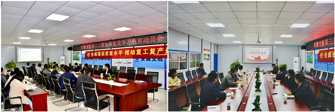 日前,三公司利辛片區(qū)黨支部黨史學習教育動員大會在邵渡口大橋項目部召開。利辛G329項目部、利辛馬胡橋項目部以及邵渡口大橋項目部所有黨員干部參加學習。三公司經(jīng)理潘家奎主持會議。