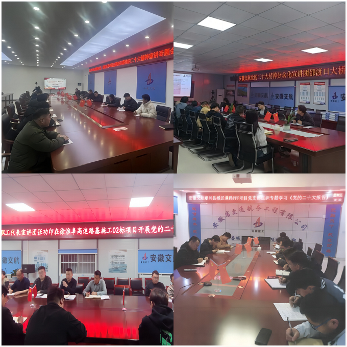 近日,安徽交航公司職工代表宣講赴基層一線開展了黨的二十大精神專題宣講,靈璧S224項目、徐淮阜高速項目、淅川PPP項目、利辛邵渡口大橋項目等100余人參加宣講。