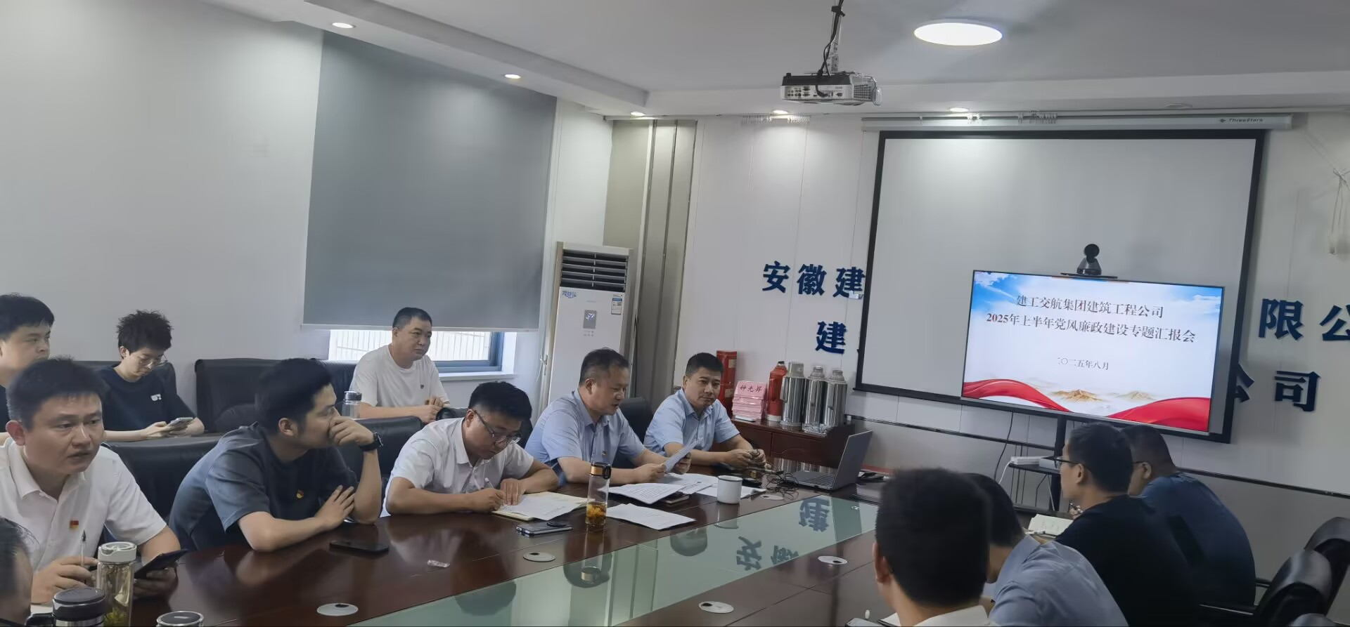8 月 15 日下午,建筑工程公司以 “現(xiàn)場(chǎng) + 視頻” 形式,在五樓會(huì)議室召開 2025 年上半年黨風(fēng)廉政建設(shè)專題匯報(bào)會(huì),公司領(lǐng)導(dǎo)班子成員、部門負(fù)責(zé)人、項(xiàng)目經(jīng)理和全體黨員參會(huì)。