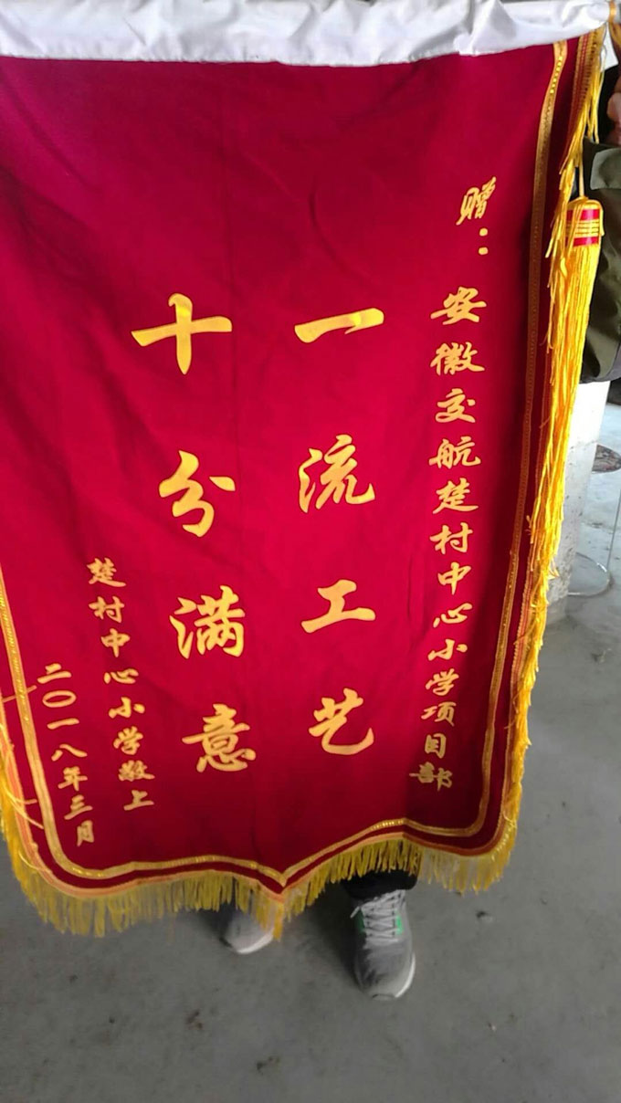 3月16日,蒙城楚村中心小學(xué)校長郟峰一行專程趕往安徽交航蒙城楚村中心小學(xué)項目部,向項目部贈送印有“一流工藝,十分滿意”的錦旗,并對項目部的辛勤付出表示由衷的感謝。